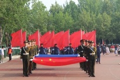 伴随着激昂的乐曲,运动员方阵依次入场,由22个院系、部门组成的51列方队步伐整齐矫健、口号铿锵有力,踏着春风徐徐向主席台走来。院旗挥舞着,仿佛代表一股青春昂扬的斗志,在运动场上来回激荡。运动员们迈着整齐的步伐,手里的彩板有节奏的变换着,鲜红的条幅来回交替着,向人们展示了一种又一种别具一格的方阵队形。自信与热情,写在脸上,向世间展示青春的骄狂。国旗护卫队护送鲜艳的五星红旗,迈着铿锵有力的步伐走过主席台,《义勇军进行曲》的旋律环绕着济大校园的整片天空,在场的每一个人怀着对祖国无限的热爱和崇高的敬意向着国旗的方向行注目礼。