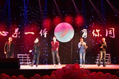 领导及老师上台与演员们合影留念。热烈的掌声和愉悦的欢呼声点燃了这个流光溢彩的夜晚,在这个欢乐的夜晚大家将满怀信心与希望,带着对新年的美好憧憬,踏上新的征程。