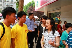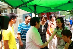 炙热的太阳让人感觉烦躁,但学校领导关心关怀的心却丝毫没有减少。当学校领导抵达舜玉小区时正值实践团成员们在举办社区空巢老人的体质监测与老中医义诊活动,领导的来临让实践团成员们十分感动,同时也十分紧张,但是领导们亲切和蔼的态度很快化解了大家的顾虑。领导们首先慰问了现场的每一位实践团的成员们,为他们的辛勤付出的劳动成果给予了极大地肯定,并为他们送去了爱心矿泉水,接着领导们察看和指导了实践团的工作。