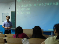 首先,Sam老师为大家深入浅出地阐明了英语学习、四六级考试通过的重要性、备考技巧及考试过程中的注意事项等,为大家讲述了自己在四级、六级考试中的亲身经历。随后老师又分别从词汇,听力和综合阅读三方面对试题中的各类题型都进行了微观分析,并就自己总结的答题技巧与大家进行了交流。Sam老师对词汇的讲解更是成为讲座的一个亮点,在随后的答疑环节,同学们踊跃提出自己对英语学习方面的疑问,学长学姐们更是一一进行了详细解答,并提前预祝同学们都能够顺利通过此次考试。