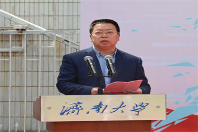 副校长、学校体育运动委员会副主任刘宗明代表学校向活动的举办表示热烈的祝贺。他指出,本届体育文化艺术节是我校庆祝建党100周年的一次全校性盛会,是对《深化新时代教育评价改革总体方案》、《关于全面加强和改进新时代学校体育工作的意见》相关文件精神的贯彻落实,活动的举办能够帮助学生在体育锻炼中享受乐趣、增强体质、健全人格、锤炼意志。为庆祝建党一百周年,本届体育文化艺术节设置了“追寻红色足迹-跑步去嘉兴”标志性运动打卡活动,希望广大青年学生通过重温党的辉煌历程,在党的历史中汲取奋进的力量,传承红色基因,增强“四个自信”,立志听党话、跟党走,立志扎根人民、奉献国家,把报效祖国、服务社会作为实现自己人生价值的目标和追求。