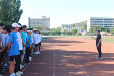 在队列队形训练开始前,王堃老师对大家提出了研习的总体要求,希望大家在校内把自己所学到的专业技能和知识运用熟练,同时展现良好精神风貌,为下学期进入中小学正式的实习活动打下坚实基础。他表示:队列队形的整理与调动是对体育教师最基本的要求。“台上一分钟,台下十年功”,只有在平常的训练中不断打磨,发现问题,改正问题,才有可能达到最好的效果。他还提出,学生们已经积累了丰富的教学知识,需要一个平台锻炼和展示自己。随后体育教育专业教师孔凡坤,对本次队列队形内容进行了示范和讲解,带领学生进行练习,时刻关注着每一个学生的练习,在过程中指出问题,并给予改正的建议,帮助学生们提高自己的专业能力。