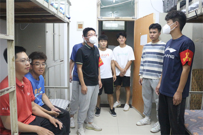 疫情防控的安全大门。二是要时刻保持宿舍内务环境干净、整洁、无异味,产生的垃圾要及时清除,衣物要摆放整齐,不要随意乱挂。三是人走一定要断电,严禁在宿舍内吸烟、使用大功率电器、电瓶充电等现象发生。四是在此次安全隐患大排查大整治中要整治彻底,人人要争当积极践行的模范员。