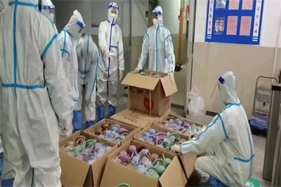 党委也积极想办法为118间宿舍、664名学生紧急购买75箱方便面、150包火腿肠、80提卫生纸、100多瓶免洗消毒液、70多盒预防感冒的莲花清瘟胶囊等温暖大礼包,以缓解同学们的燃眉之急。看着一份份物资运抵防疫的最前线,瞬间一股暖流流淌在防疫一线工作人员及664名被静止管控学生的心中。