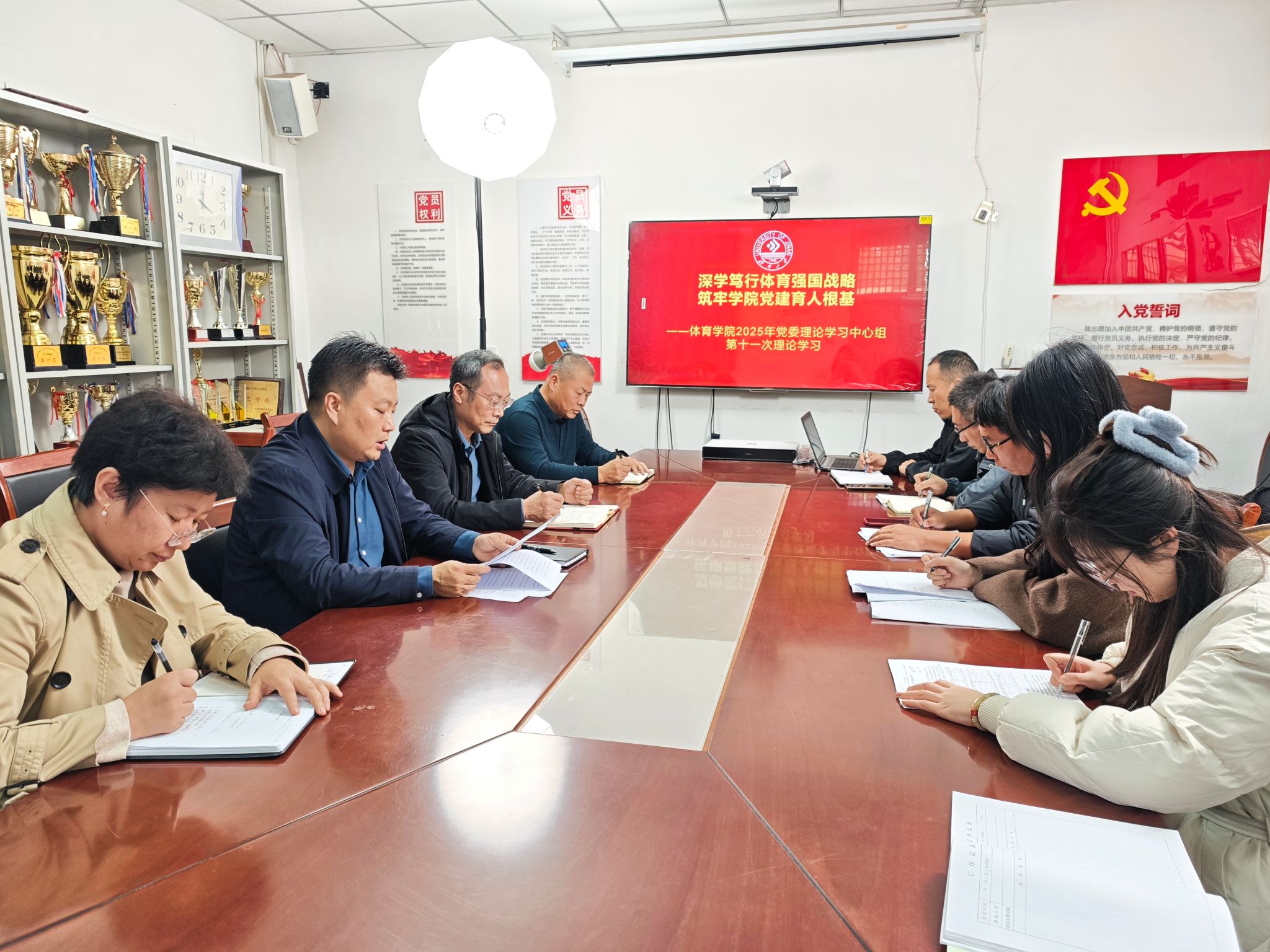 党委理论学习中心组开展了以“深学笃行体育强国战略,筑牢学院党建育人根基”为主题的2025年第十一次学习活动,党委理论学习中心组成员、全体学生工作人员参加此次学习。