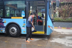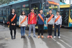 志愿者们由会长带队,早上九点四十开始便到达公交车站开展志愿服务。活动开始后,志愿者会长对参加活动人数以及需要清理车辆的范围进行了明确的分工,同时对一些细节问题进行了详细交代。志愿者们明确目标后紧接着进入工作状态,他们相互配合,甚是默契。在整个过程中他们都用微笑对待每个工作,虚心向工作人员请教。直到把所有的车辆都洗完志愿者们才结束一天的服务。虽然 “汗水与尘土齐飞”,但是同学们脸上都洋溢着快乐的笑容。志愿者们的热心服务得到了工作人员的一致好评,最后志愿者们合影留念。