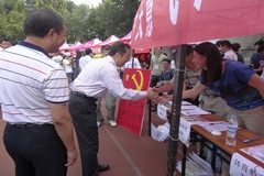 迎新点了解新生报到情况,看望新生及家长,慰问迎新工作人员。