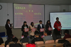 选送的节目精彩纷呈,现场欢笑声、喝彩声不断。首先,一支嗨动全场的舞蹈点燃了晚会现场的气氛。接着,开始进行第一轮“个人奖”颁发。其中,个人奖项分为“道德风尚奖”、“精神文明奖”和“优秀个人奖”。在颁奖环节中,又进行了激动人心的微信抽奖和“砸金蛋”,使每位现场奖获得者都得到了丰厚的礼品。之后,为大家带来了幻影魔术协会精彩的魔术表演和优美动听的吉他弹唱,将晚会推向高潮。随后,进行了班级奖颁发,即“最佳上进班级奖”、“最佳文明班级奖”和“最佳爱国班级奖”。颁奖晚会接近尾声时,禁漫天堂