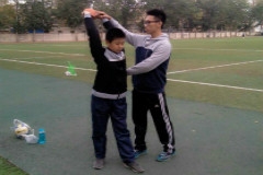东校区进行各项体育课程实践教学。在体育课程设置上,有花样跳绳、中考体育项目及体质训练,还增添了篮球运动项目。首先,成员们带领学生进行简单的热身活动。接着,成员们开始对学生进行花样跳绳、中考体育和篮球教学。在教学过程中,成员们一一为学生讲解跳绳的开始动作、简单花式动作,如交叉跳、八字跳;中考体育给他们讲成绩得分的训练捷径、教授了实心球的动作要领;篮球有投篮、运球和三步上篮等技巧动作。在教学最后,实践成员带领学生们进行了一些有趣的体育小游戏。学生们虽然累,但是脸上的笑容显示了他们从中获得了快乐。至此,一个半小时的运动教学顺利结束。