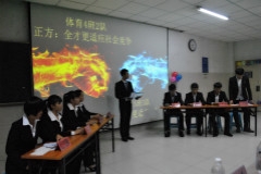 于第二教学楼304室成功举办了以“青春梦,体育梦,我的梦”为主题的第五届新生辩论赛。此次辩论赛由学生会、自律会、网站三大组织主席担任评委,各班级学生积极参加。
