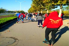 早8点,雾影轮滑社全部成员在新西门集合完毕后,由社长带领,先乘坐公交车完成一部分路程,下车后一路滑行前往长清区大学城。雾影轮滑社全体成员身着事先准备好的红色社服,呈一路纵队排开,雾影的成员们开始了“飞”的旅程。经过长时间的锻炼,成员们的轮滑技术已经趋于稳定,在这个长达几十米的队伍里,没有跌倒、碰撞等意外发生,成员们的良好默契在此刻表现的淋漓尽致。长长的轮滑队伍以及洋溢着青春的面孔也引来了路人的注视和赞赏,提升了成员们的自信心。最后,社员合影留念此次活动圆满结束。