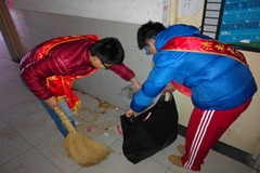 此次“清洁卫生”的活动是清理宿舍楼各楼层的垃圾。早上同学们8点准时集合,告诉了楼管大爷大妈我们的活动内容,得到了大爷大妈的支持。志愿者询问楼管大爷大妈需要清理的位置后就开始行动了,志愿者们带着方便袋,拴好拖布,拿着扫除,来到需要清洁的地点,看到了楼道里有许多垃圾,把垃圾都装入垃圾袋,一袋一袋的从楼上拿下来,放进垃圾桶,把宿舍的环境打扫的干干净净。看似简单的工作,实际确是又脏又累,但是志愿者们积极认真,共同努力打扫,经过不懈努力,环境变得又干净又整洁了。