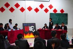 晚上6点,随着灯光一暗,纤然舞社团的四位美女身着肚皮舞服,以优美的舞姿获得台下同学们的阵阵掌声,随着音乐结束,辩论赛正式开始。首先,两位主持人宣读开幕词,并介绍了此次辩论赛评委和双方辩手。随后辩手上台进行辩论。正反双方一辩各有5分钟的阐述,其次是攻辩阶段,自由辩论阶段。场上辩手们争先恐后的用论据来反驳对方,唇枪舌战,毫不示弱,辩论相当激烈。台下观众聚精会神,生怕错过最精彩的地方。最后由四辩总结陈词。随着第九队反方四辩的话音落下,本次辩论赛也画上了句号。辩论赛最后,主持人宣布获奖队伍,并宣布本次辩论赛圆满结束。