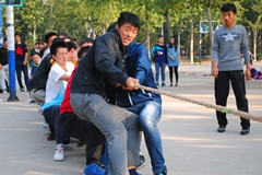 本次比赛共有六支参赛队伍,以班级为单位,男女混合。比赛实行淘汰晋级方式,抽签分组决定比赛顺序。裁判员发出“预备”口令时,参赛选手们半蹲身体,攒足了劲儿。当比赛的哨声响起,选手们口中一起高喊着“一二,一二”,双手紧握长绳,有节奏的拼命往后拉。此时此刻,加油声、呐喊声,响彻在整个篮球场上空,参赛人员本着“友谊第一,比赛第二”的原则,在激烈的耐力、体力较量下,各个班级及时调整战术,奋勇拼搏。最后,两个班级进入紧张的决赛中,体育1401班队员们凭借良好的状态和高昂的气势,赢得了冠军。体育1403班获得第二名。伴随着同学们的热烈欢呼,拔河比赛圆满结束。