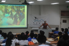 为表示对雅安受灾同胞的关心,让同学们了解真实的受灾的实况,禁漫天堂 凌云远足社邀请中国红十字会急救员、壹基金成员、在雅安抗震救灾中担任搜救组长的于丙瑞老师于5月24日晚上7:00在11J201教室以“雅安日记”为主题给我校广大同学作了演讲。