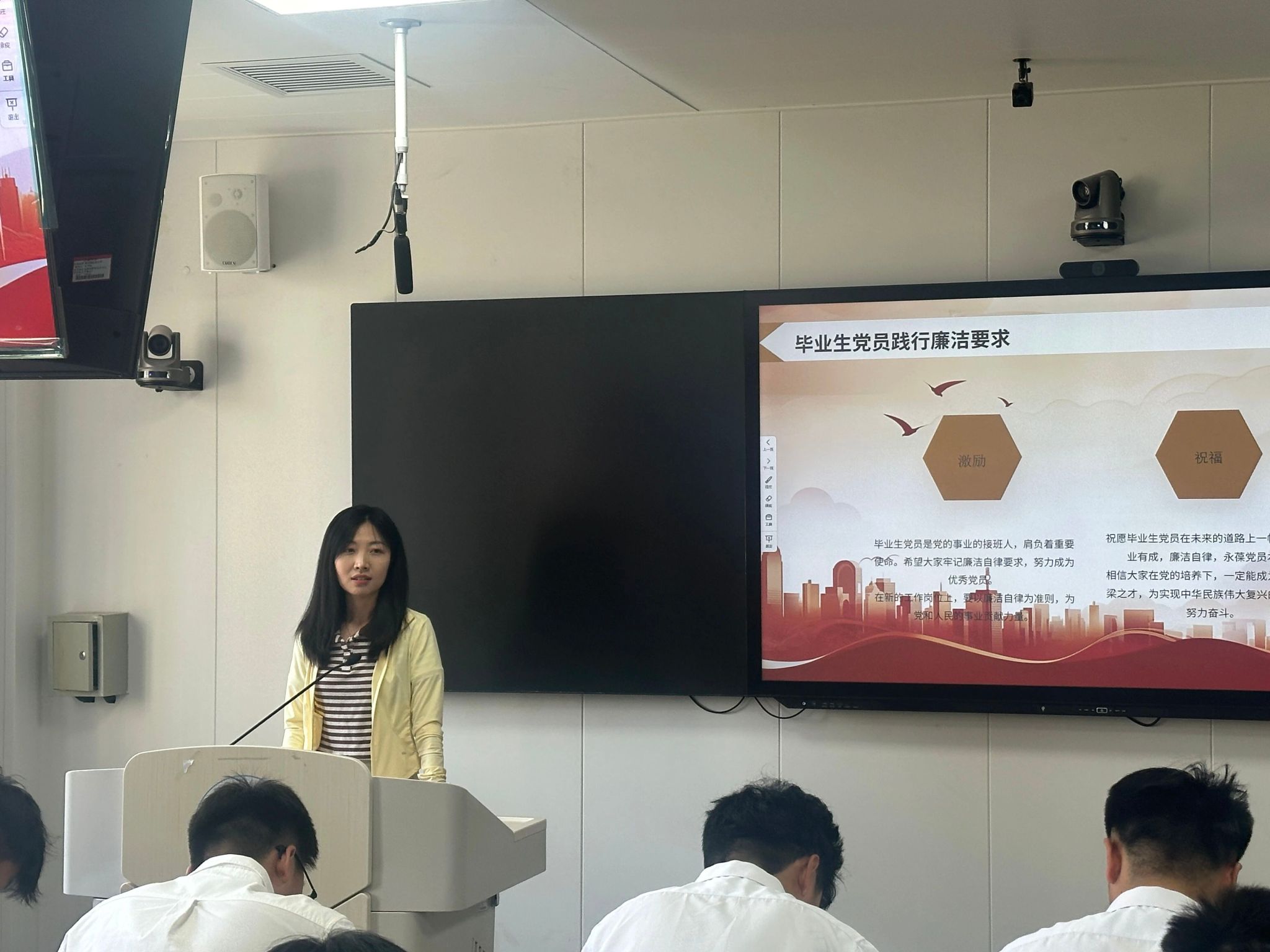 党课上,孙成豪围绕中央八项规定精神的内涵、重要意义和实践要求,结合典型案例,深入剖析了违反中央八项规定精神的具体表现和严重危害。他强调作为毕业生党员,要时刻保持清醒头脑,增强纪律意识和规矩意识,自觉抵制各种诱惑,做到廉洁自律、克己奉公。他还结合毕业生党员的实际情况,对大家提出了殷切期望。希望毕业生党员在走上工作岗位后,能够继续发扬党的优良传统和作风,时刻保持学习习惯,牢记党员身份,践行党的宗旨,在各自的工作岗位上发挥先锋模范作用。同时,要时刻绷紧廉洁自律这根弦,做到心中有党、心中有民、心中有责、心中有戒,以实际行动维护党的形象和声