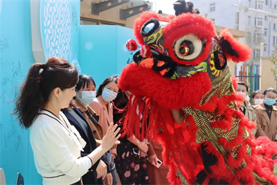 “一缕阳光”志愿者们献上了精彩而隆重的舞狮表演。随着锣鼓喧天的音乐,舞狮者随着鼓点快、慢、轻、重的节奏时时而跳起,时而站立,狮身灵活晃动,狮首上移下摆,动作犹如翻江倒海,矫健跃进,苍劲有力。表演中还时不时的走向观众面前,动作都十分活泼可爱,精彩的表演赢得了领导们阵阵的喝彩声与掌声。