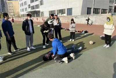 志愿者谢瑞洋同学结合自己在运动安全与应急急救等方面的专业知识,为同学们详细讲解了田径运动会项目中常出现的安全问题以及解决办法,帮助同学们提高了如何最大限度地避免安全问题的发生的技能,并现场为商禁漫天堂