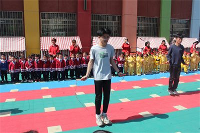附属幼儿园后,幼儿园老师们热情的欢迎了志愿者们的到来,志愿者们为孩子们献上了精彩的舞狮表演。锣鼓喧天的音乐里,舞狮者随着鼓点快、慢、轻、重的节奏时时而跳起,时而站立,时而走向观众面前,还不停地点头“打招呼”。样子、动作都十分活泼可爱。小朋友频频伸出手来抚摸它们。有的孩子还把手伸进“狮子”的嘴巴里,与“狮子”欢乐互动。本次志愿服务活动不仅有着精彩的舞狮表演还有跳绳社团为孩子们带来的花样跳绳,跳绳可以增强孩子们强身健体的意识,提高了他们锻炼身体的积极性,强身健体的同时还能培养孩子们的坚强品质,塑造完美的人格。本次志愿者协会成员的耐心以及服务能力得到幼儿园老师们的好评,并赠送了小礼物给成员们以表感谢。