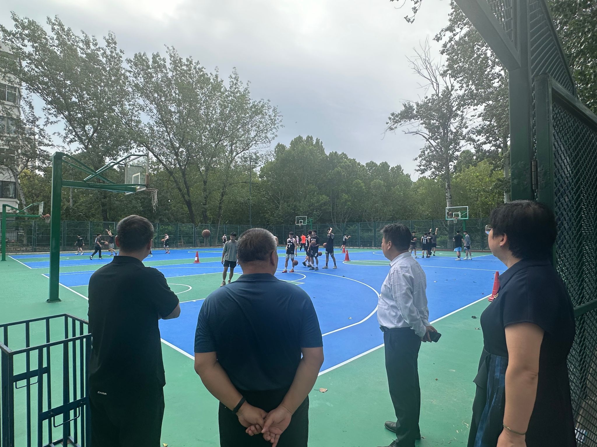 的运动场地和设施进行了检查,包括场地的地面状况、器材设备的配备与完好程度等。对一些新更换或修缮的设施,进行了重点检查,确保其符合教学和训练的安全标准。在检查过程中,孙成豪特别强调了场地设施安全的重要性,要求相关负责人和任课教师务必时刻关注设施的使用情况,定期进行维护和保养,及时发现并排除安全隐患,为师生们提供一个安全、舒适的教学和运动环境。同时,针对部分设施的更新和完善问题,领导们也进行了现场讨论,提出了进一步的改进建议和规划,以满足日益增长的教学和训练需求。