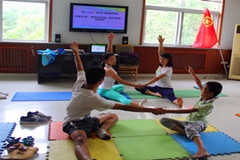 下午1点,实践团成员在济南市舜玉街道舜园社区集合,对青少年和家长进行亲子瑜伽教学。结合青少年和家长的身体状况,实践团成员进行了课程设计,课程的安排注重亲子之间的交流和家庭运动氛围的形成。课程开始的项目对身体的柔韧性要求较小,但是需要父母与孩子之间密切的配合,这些动作可以相互矫正姿势,更好地保持身体平衡。最后训练的是高难度动作,需要两个人的默契配合。一个半小时的亲子瑜伽教程,在孩子和父母的汗水和愉悦中顺利落下帷幕。