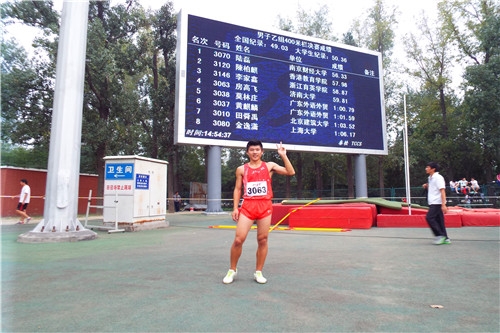 10、房高飞同学获得男子乙组400m栏第四名、4*100m接力第三名、4*400m接力第一名 教练员:李保安副教授(图11)