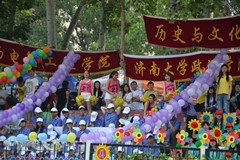 比赛开始之后,运动员们奋勇争先,积极进取,挥洒着自己的激情与活力。100米、200米、400米、800米、1500米、3000米……无不锻炼着运动员的爆发力与耐力;跳远、跳高、铅球、标枪……一项项力量与技巧的考验,都展现出运动员别样的风采,4乘100米和4乘400米接力更能展现出团队之间的合作。赛场上他们为着自己的荣誉孤军奋战, 枪声、起跑、冲刺……挡不住的是健儿们如火一般的气势,当仁不让、舍我其谁,抹不去的是健儿们汗水浸透的誓言。 然而,赛场下啦啦队员的呼声却一浪更比一浪高。即使嗓子已经沙哑,即使嘴唇已经干裂,即使运动员获得的奖牌和荣誉与自己无关,可是他们还是想凭借一己之力帮助运动员取得胜利。欢呼声、呐喊声、摇旗声、擂鼓声,每一声助威都宣扬了济大学子前进的不懈追求,每一次呐喊都诠释了济大学子团结的忘我情怀。