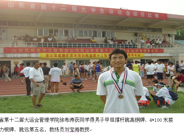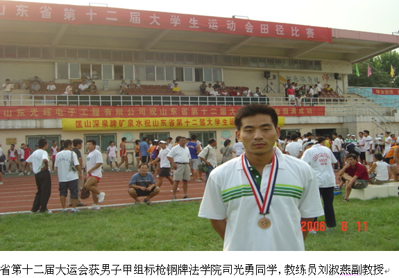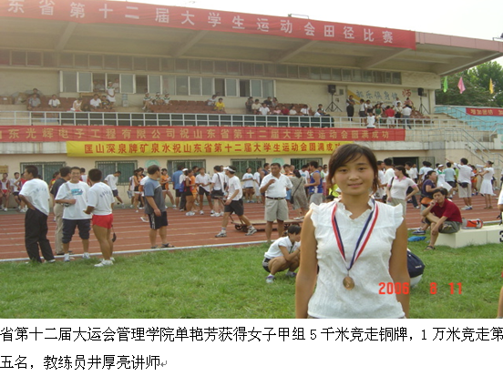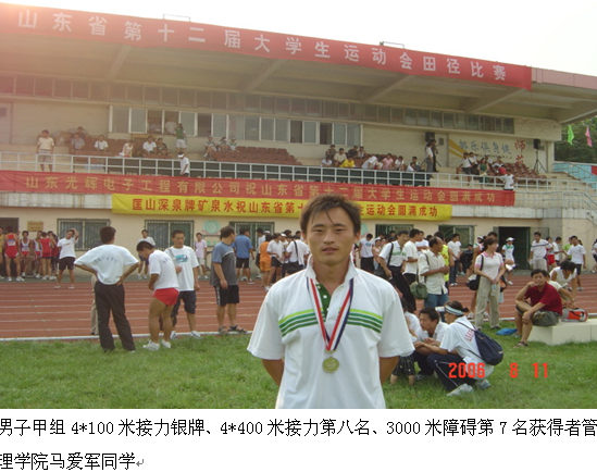 3、第十二届山东省大学生运动会马立强分别获得男子甲组400米栏、第七名,3000米障碍第六名。