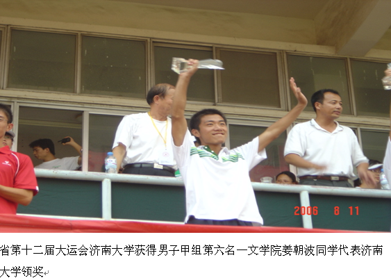 2、山东省第十二届大学生运动会男子甲组4*400米接力第八名。