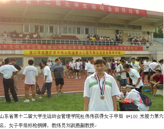 3、山东省第十二届大学生运动会女子甲组4*100米接力第六名。