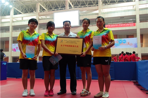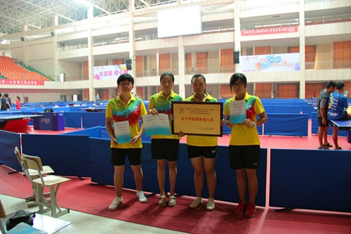 获得女子甲组团体第八名的我校4位女选手由左至右依次为: