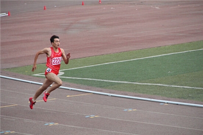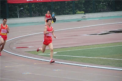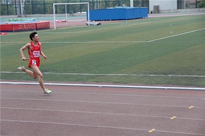李韬同学在男子甲组4*400m接力第1棒比赛中