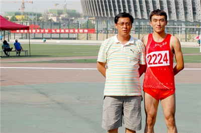 杨德麒同学(右一)与教练员李保安副教授合影